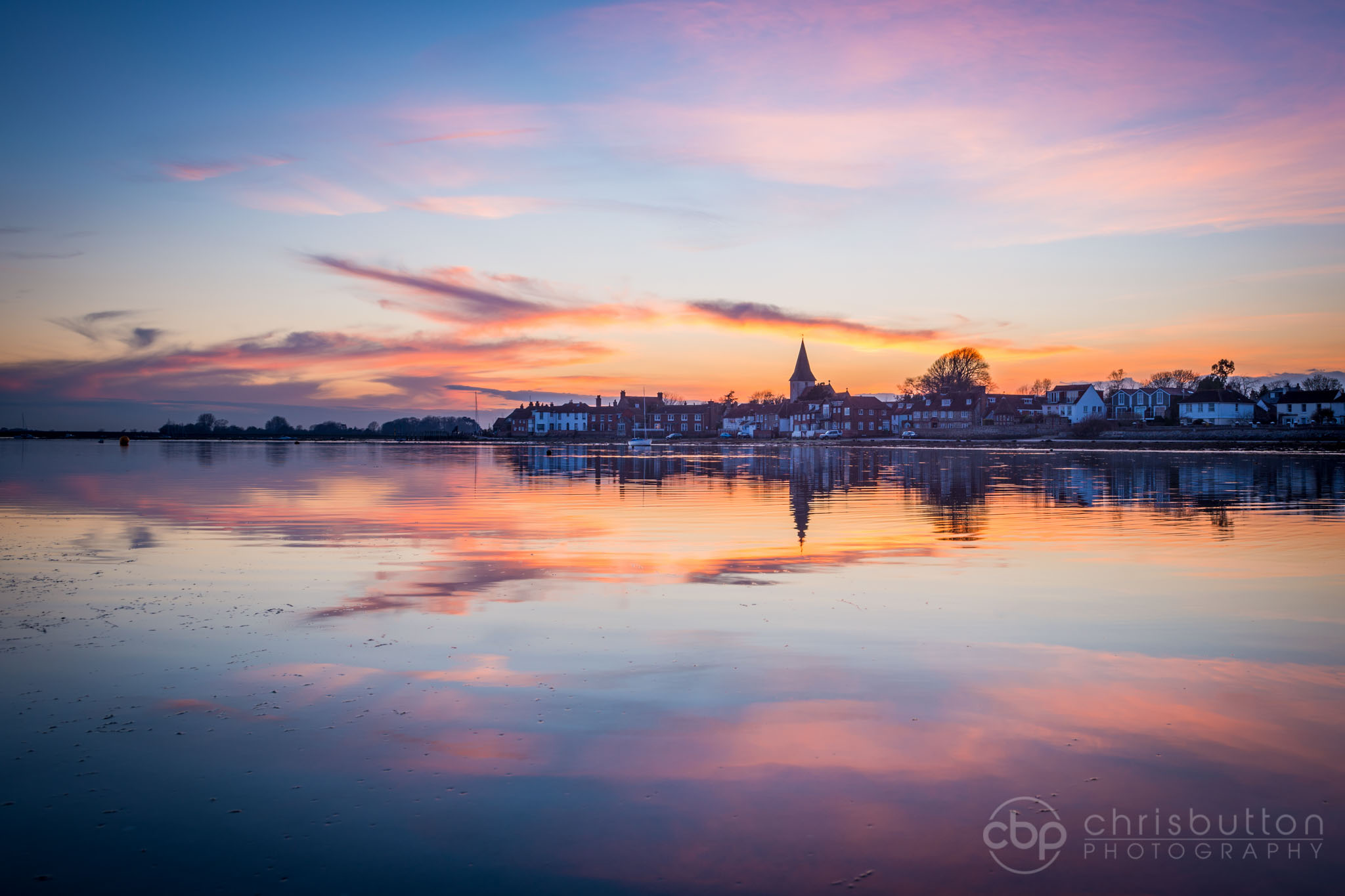 A lovely tranquil evening looking across the inlet at Bosham. It is believed that King Harold is buried in a grave in the iconic saxon church following his death at the Battle of Hastings.