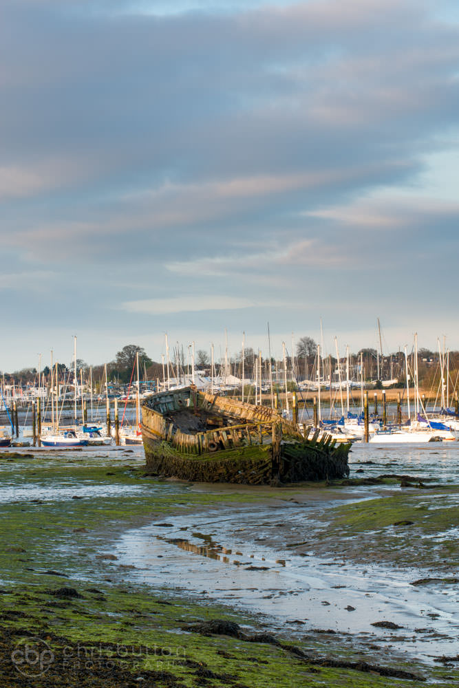 This is a boat wreck my assistant at work had told me about and I had visited in May 2011 but in overcast conditions. Two years later I retuned and took this image at dawn in better light. From comparing my images it was clear that there had been some deterioration in the 2 intervening years. The water channel makes it look like the boat had been dragged out to where it lay and the channel also leads the eye nicely. I find images of decay, abandonment and ruins quite interesting to photograph and these sort of subjects usually make great focal points. The boat was built in Essex in 1944 and in the 1980s it come to the Hamble River and was abandoned at its current location.