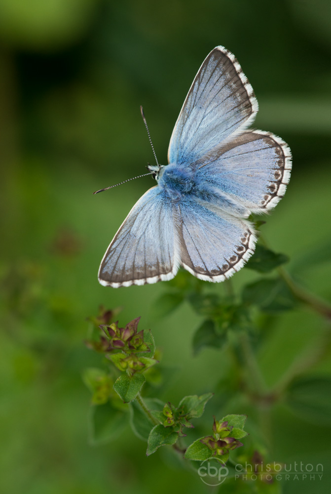 A lovely pristine newly emerged male Chalkhill Blue butterfly.