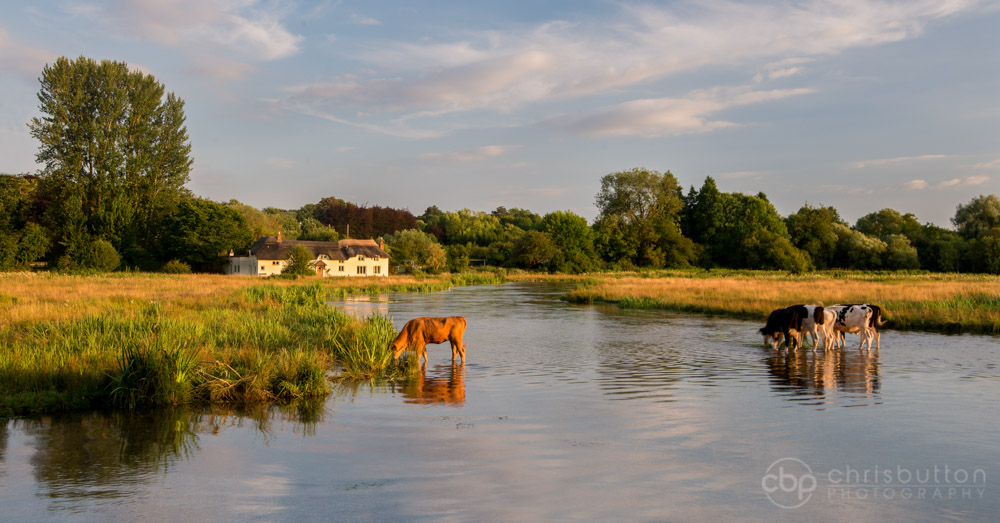 A summer evening at Chilbolton on the River Test taken during one of my workshops just as the Cows came in to drink.