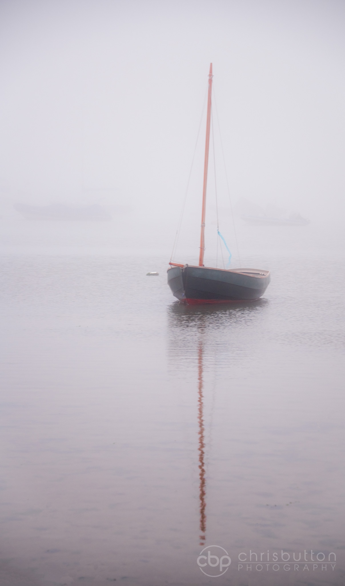 Fog and mist are usually accompanied by light winds and so reflections were likely inside the harbour and finding a single isolated boat worked nicely.