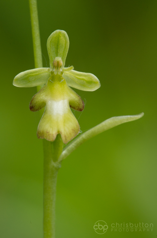 The extremely rare yellow form (ochroleuca) of Fly Orchid photographed at Noar Hill in Hampshire.