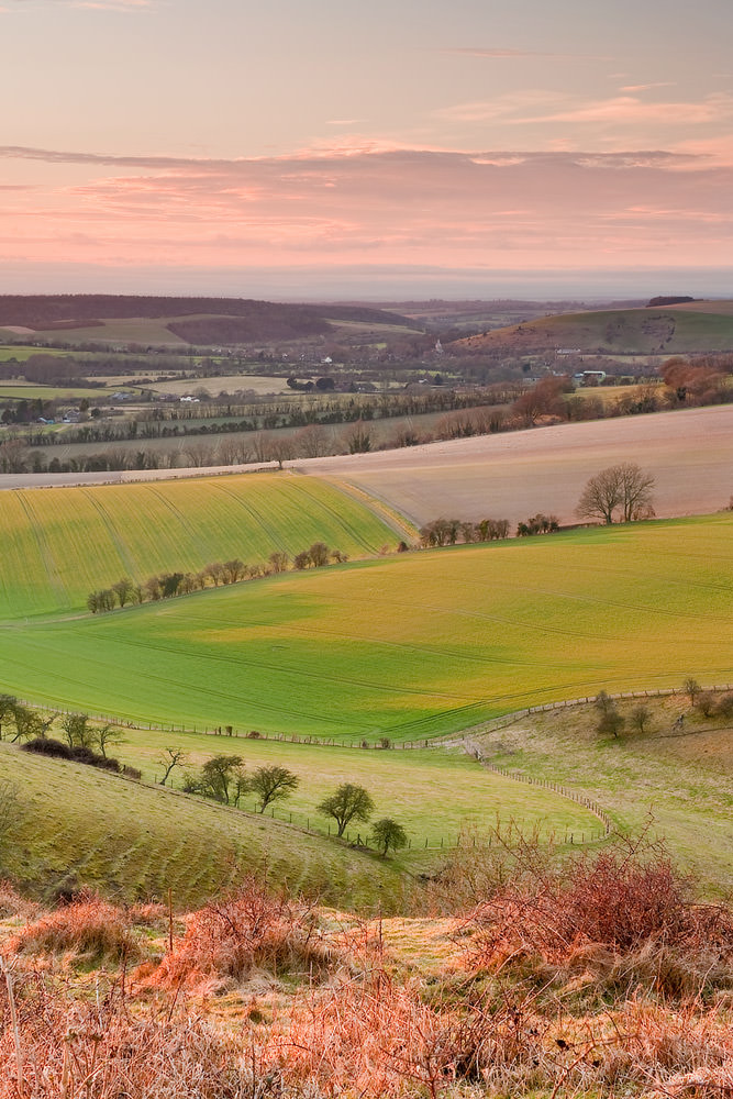 As one of the highest points in Hampshire Butser Hill dominates the surrounding landscape. With an hour to go before dusk the sun disappeared behind the only cloud in the sky. I decided to hang on and hope that around 50 minutes later it would reappear in a small clear gap at the horizon. Thankfully it did and much improved an otherwise flat image. Side lighting always enhances the contours and colours and so I always like to plan a shot with side lighting in mind.