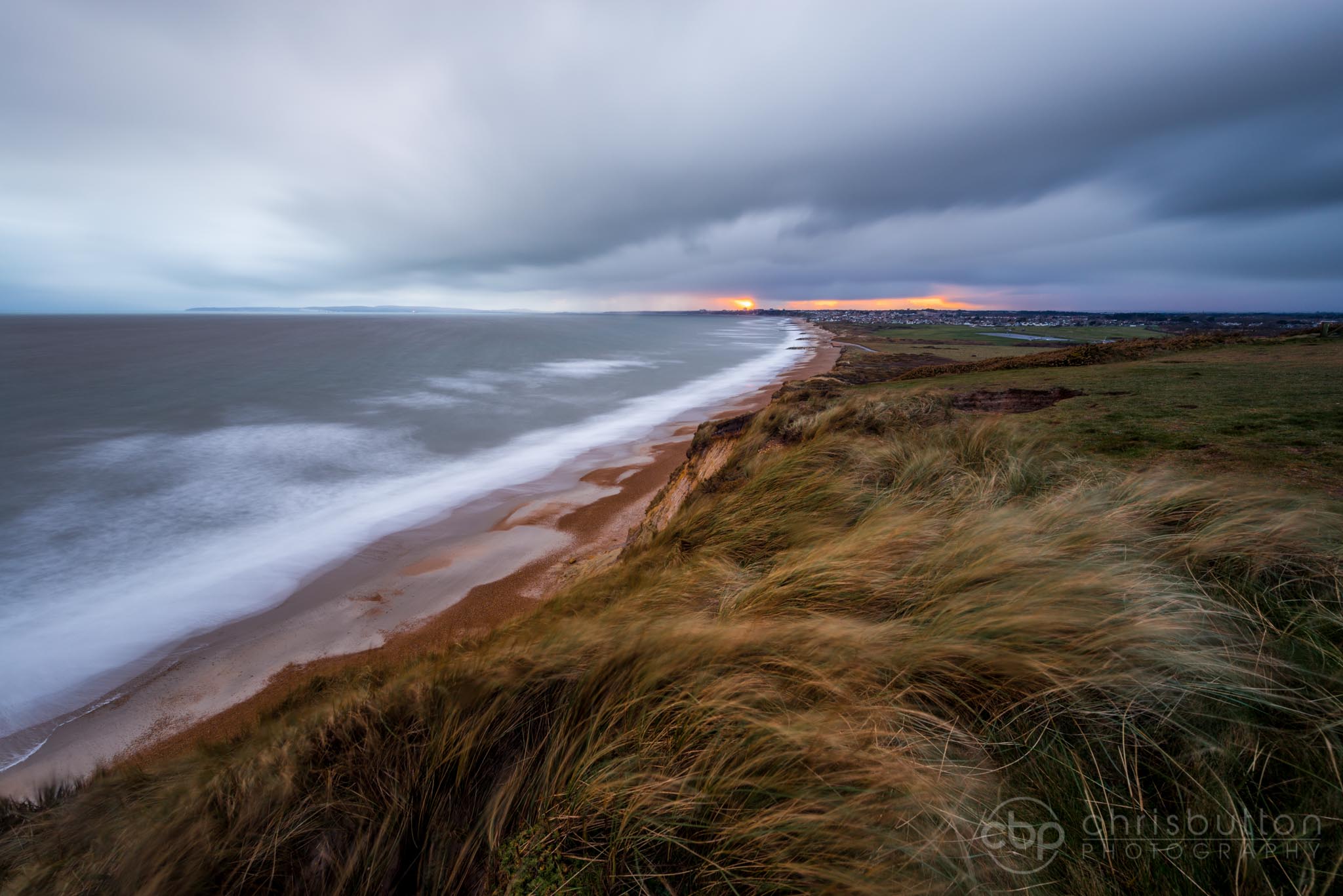 With a forecast for heavy showers, a strong breeze and some sunny intervals I decided to head out for sunset. I arrived on the top at Hengistbury Head during a wintery shower and I set up in the shelter of the coastguard lookout. As the rain eased I ventured out looking for compositions and decided to include some grasses which I hoped would blur slightly with a long exposure to reflect the windy conditions. The quickly moving clouds also looked better with this longer 30 second exposure and some colour over Bournemouth was a bonus.