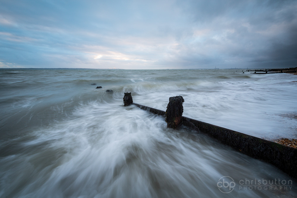 One of the groynes at Hill Head on the beach just below the Beach Huts.