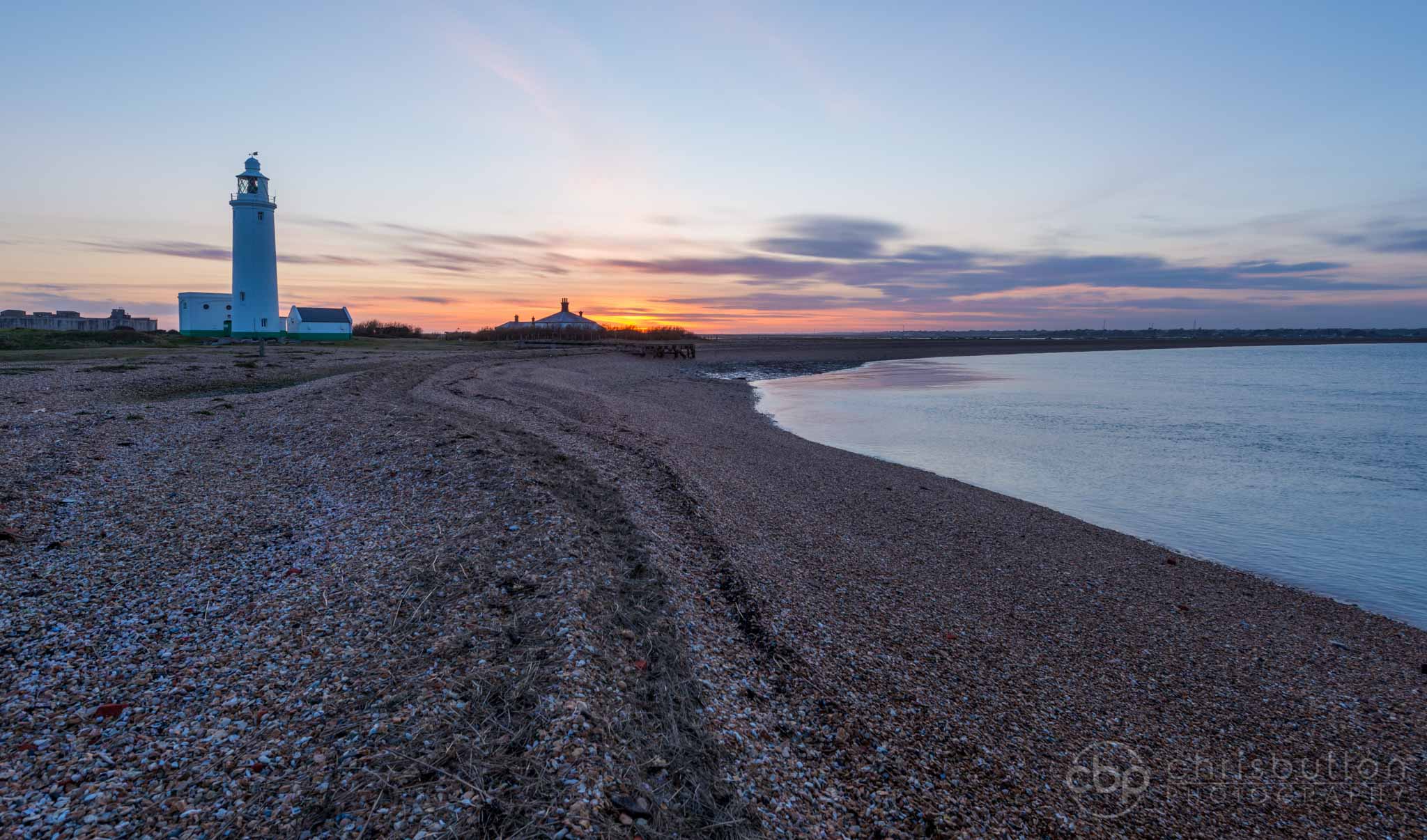 After the sun had set on the Lighthouse at Hurst I walked to the very end of the spit and turned back to look west. A previous high tide line provided a lovely snaking lead in line through the otherwise featureless shingle.