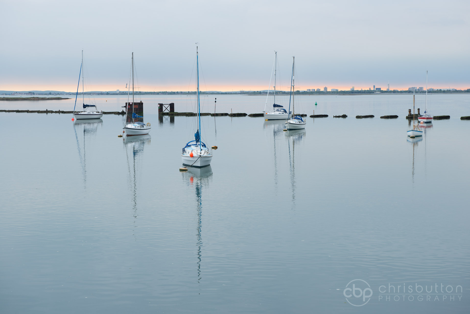 This is the sort of shot I would only plan for if light winds were forecast and that usually means 6mph or less. The lovely diffuse light and a band of colour at the horizon were an extra bonus and the Spinnaker Tower is just visible towards the right of the frame.