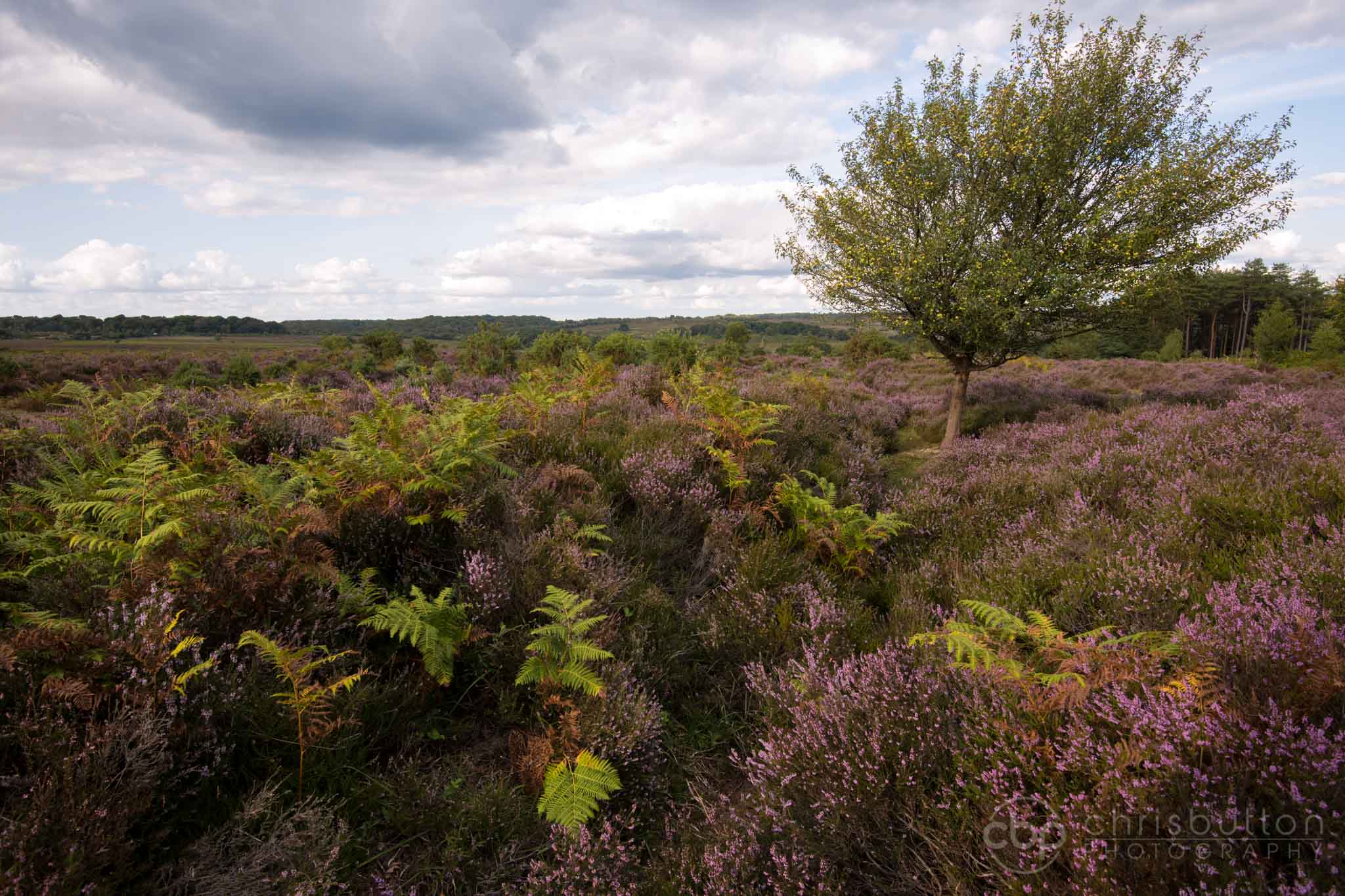 There is a lovely apple tree at Mogshade and at this time of year the heather is in flower and the ferns provide a lovely splash of contrasting colour.