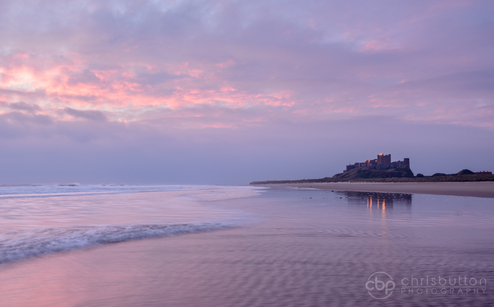 I switched to a landscape orientation and adjusted the shutter speed to around 1-2 seconds and captured this image with the wave drifting in quietly from the bottom left in a subtle way which seemed to match the atmosphere of the pink dawn.