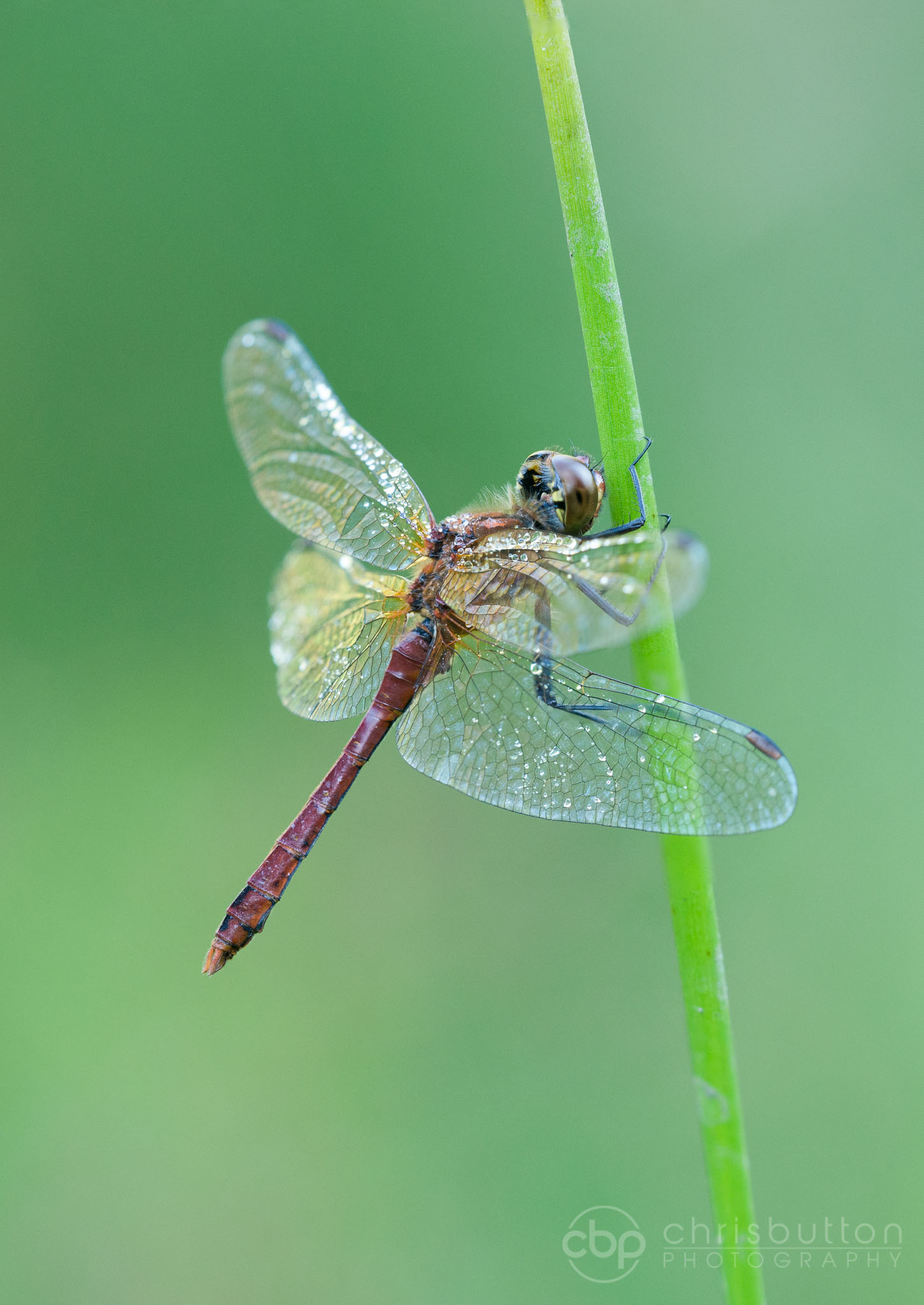 I arrived around sunrise to photograph the Ruddy Darters at Emer Bog near Chandler’s Ford but because the sun didn’t get around to this clearing it was several hours before they were warm and dry enough to fly. This male was just about ready to take his first flight of the day at around 8am.