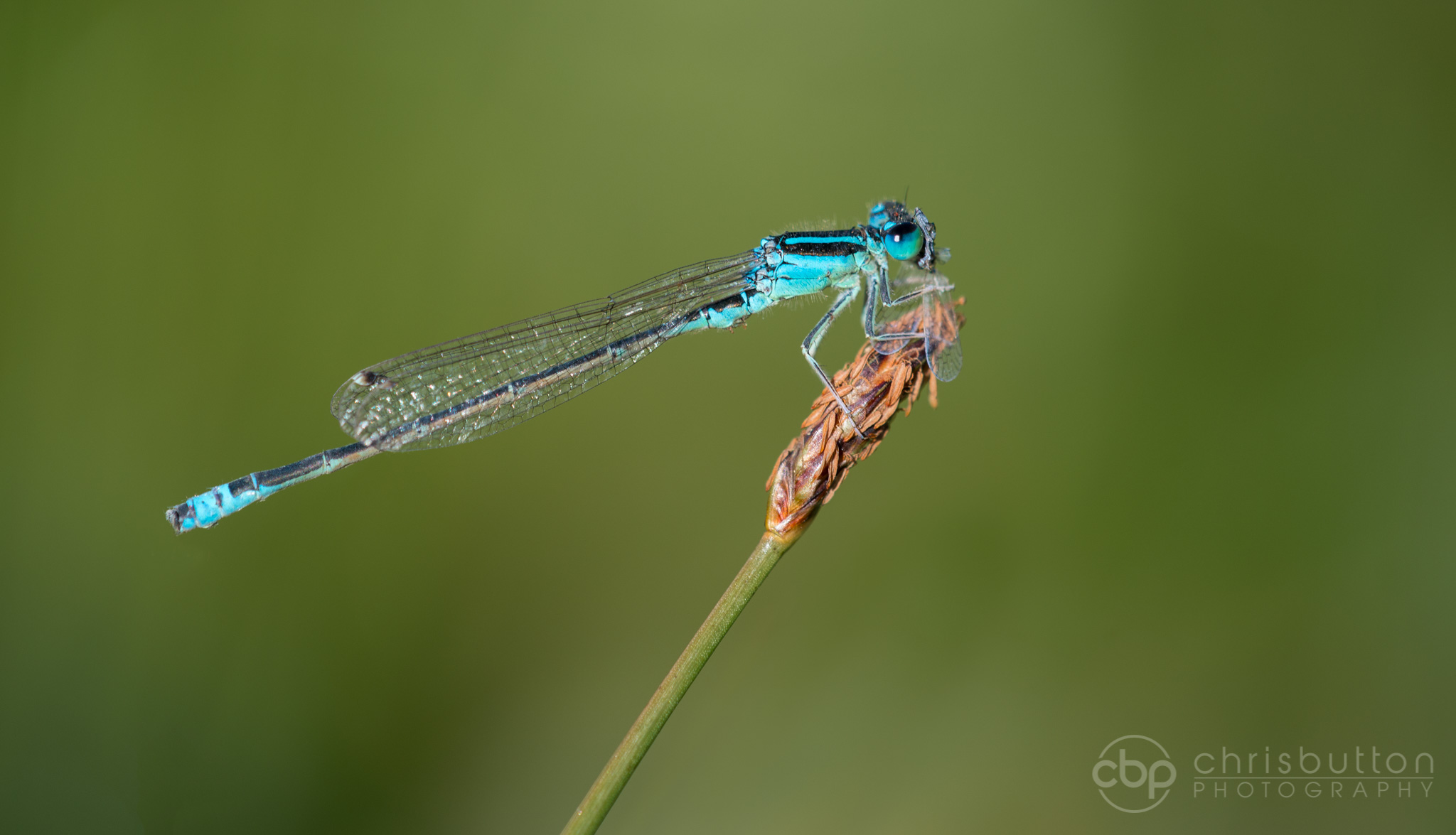Latchmore Brook in the New Forest is one of the best locations for the very rare Scarce Blue-tailed Damselfly. Getting close enough to get a photograph was very tricky as the insects favoured the middle of the wet flush where rafts of the flower Marsh St Johns Wort provided a very unstable mat. This male was engrossed in eating a Lacewing.