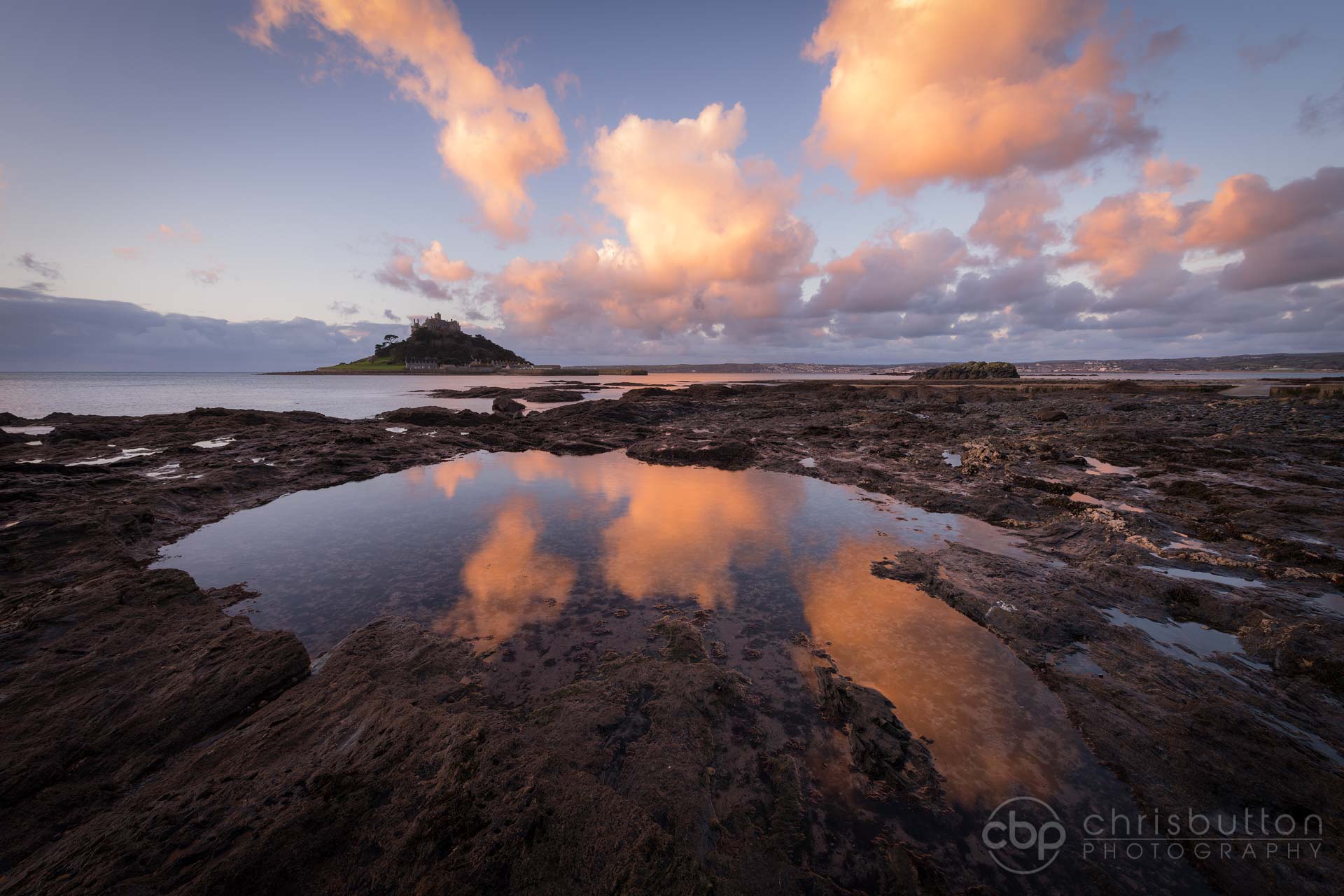 A hint of colour reflected in one of the rock pools higher up the shoreline.