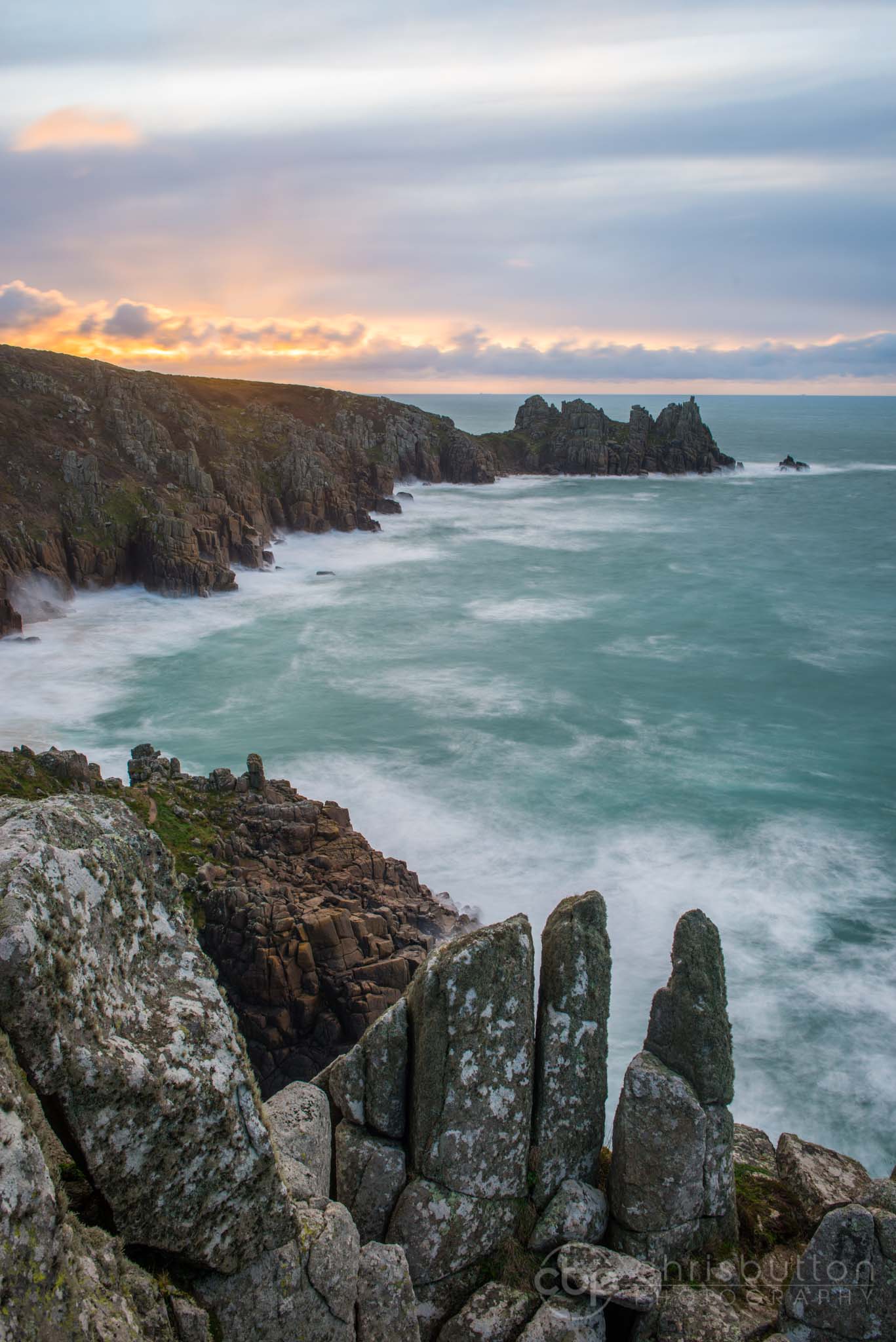 This viewpoint is slightly lower down the cliff than the previous image and a bit of a scramble down but the two fingers of rock viewable from this lower position make great pointers.