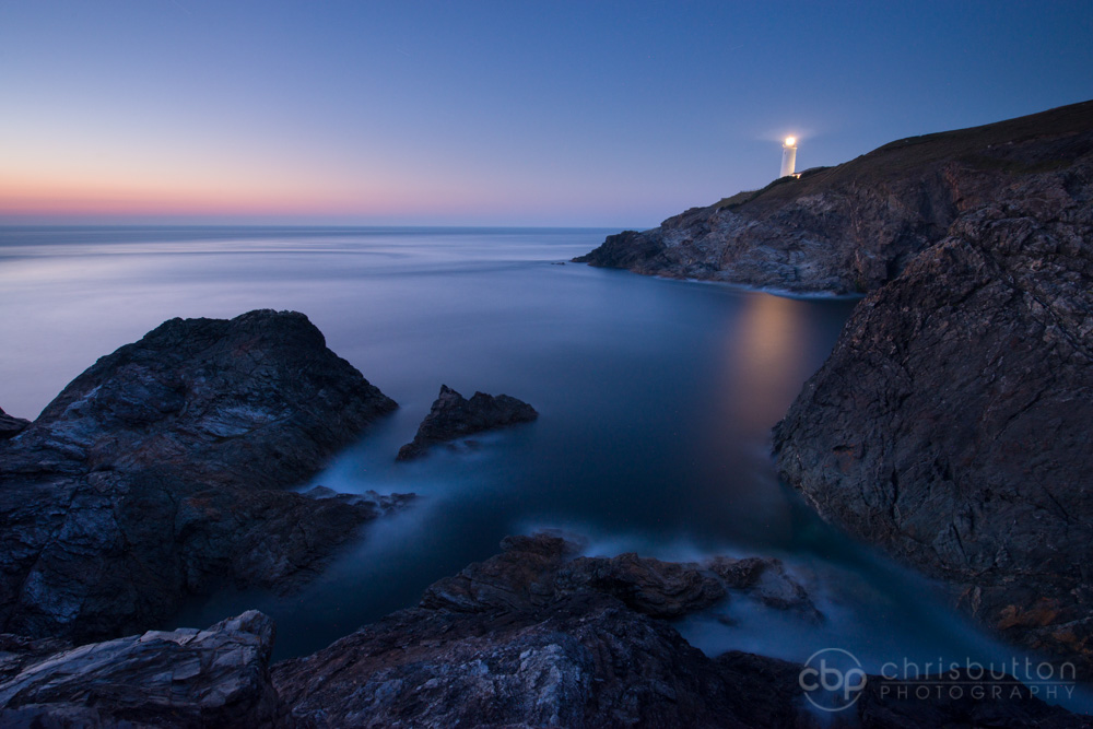 An 8 minute exposure of Trevose Head Lighthouse an hour after sunset.